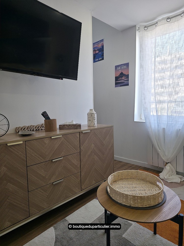 Il se compose d’une pièce de vie d’environ 18 m² avec un espace salon meublé et une cuisine ouverte, aménagée et entièrement équipée. Vous trouverez également une salle d’eau avec grande douche à double colonne et un meuble à large vasque, ainsi qu’un WC indépendant.
