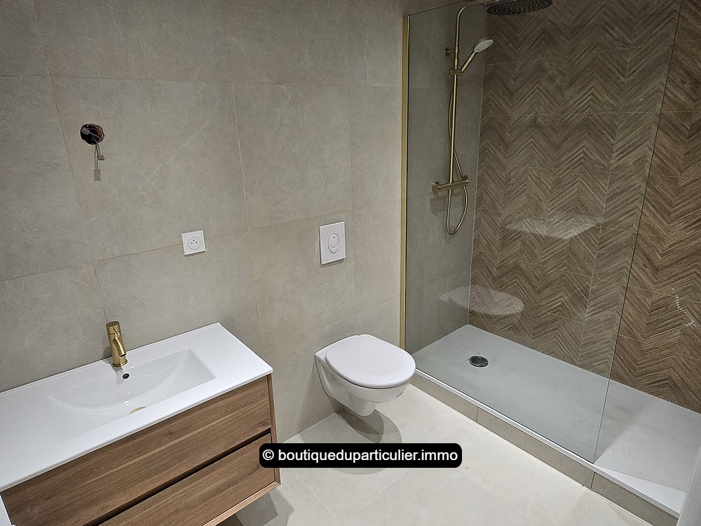 Le logement n'a pas encore été habité depuis sa rénovation totale ; accessible par quelques extérieures avec son entrée indépendante, il comprend une salle à manger d'env. 22 m², une cuisine séparée prête à être aménagée d'env. 17 m², 3 chambres d'env. 11 et 9,50 m², et une petite d'env. 8 m². Salle d'eau avec grande douche et WC, buanderie, et 2nd WC indépendant.