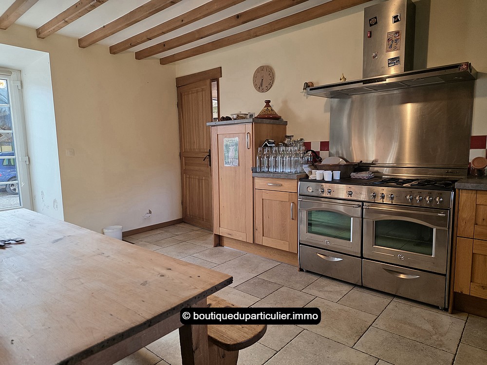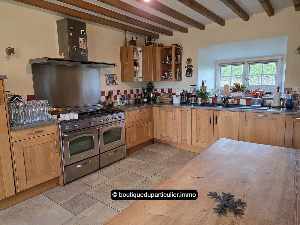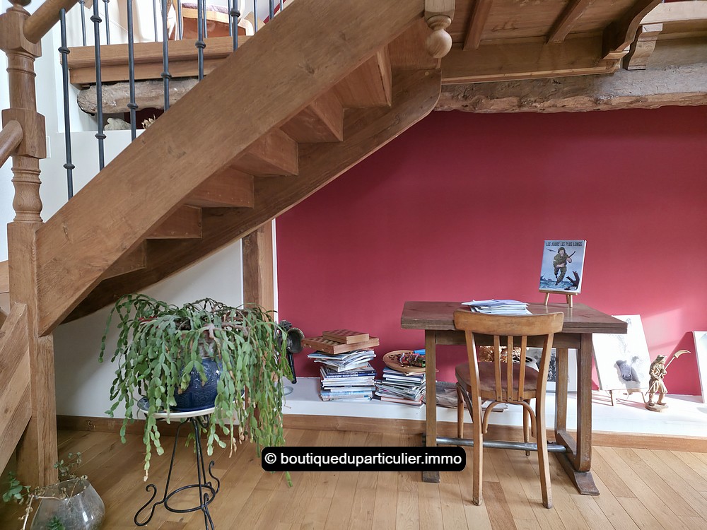 Enormément de charme pour ce corps de ferme ayant bénéficié d’une belle rénovation il y a une quinzaine d’années. Avec ses 225 m² habitables répartis sur trois niveaux, il offre un cadre de vie spacieux, chaleureux et particulièrement séduisant, grâce à ses aménagements soignés où se mêlent authenticité, élégance et préservation du bâti ancien.