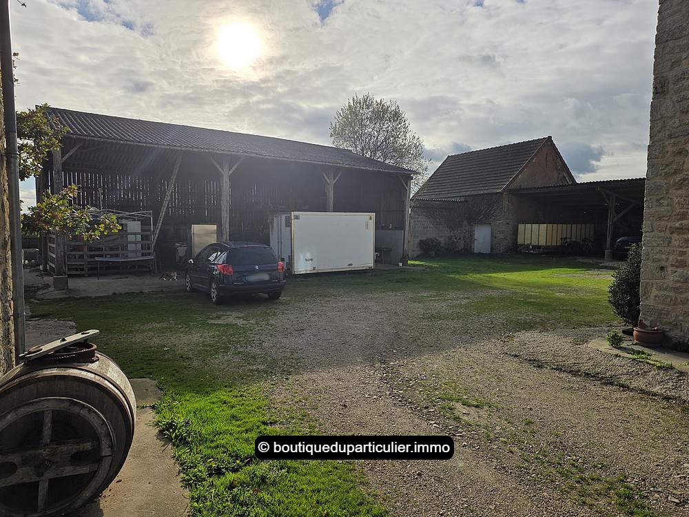 Les extérieurs sont actuellement principalement aménagés pour un usage agricole (grand bâtiment ouvert, ancienne grange en pierres, carport, et diverses étables ou celliers de stockage agencés autour d'une grande cour centrale. Possibilité d'acheter plus de terrain, conditions à voir avec le propriétaire).