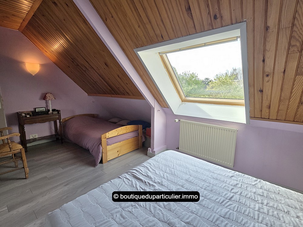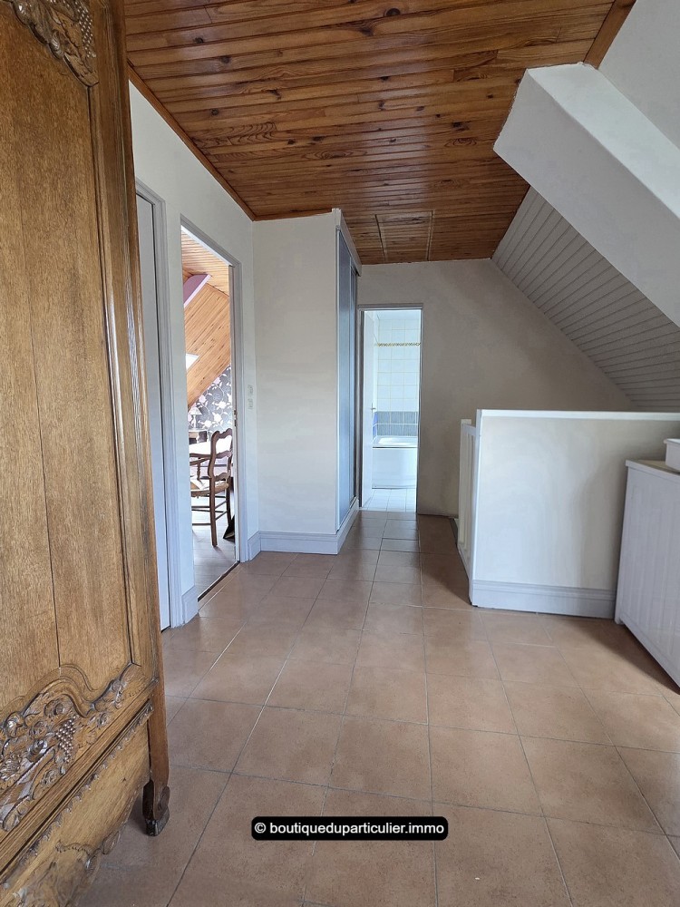 A l'étage, une mezzanine répartit les différentes pièces du niveau, comprenant 3 chambres mansardées, et une salle de bains avec baignoire et WC.