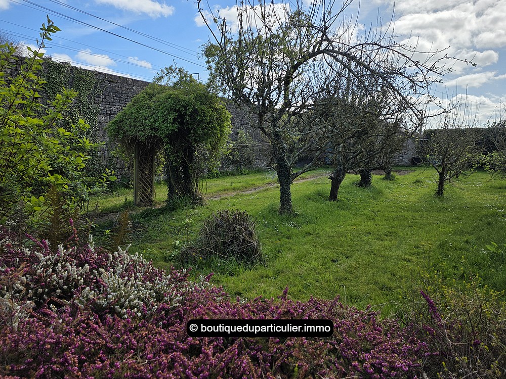 Terrain clos autour de la maison avec nombreux arbres fruitiers : pommiers, pruniers, pêchers, cerisiers, poiriers, kakis...