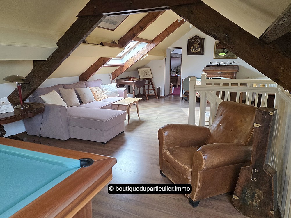 Sous les combles, une grande pièce de jeu d'env. 45 m² au sol a été aménagée sous les mansardes, ainsi qu'une 5ème chambre d'env. 25 m² au sol (env. 12 m² Carrez).
