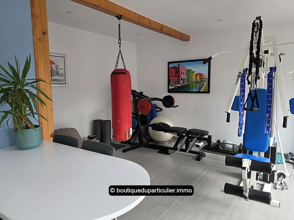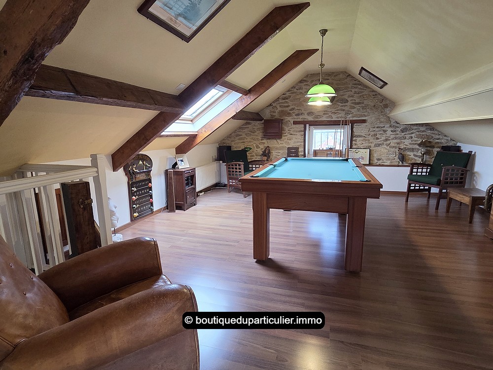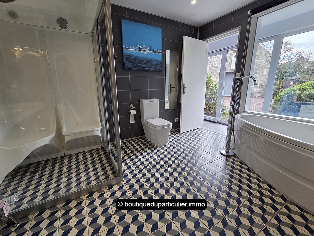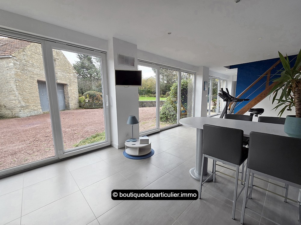 A la suite, toujours de plain-pied, une grande extension a été créée il y a une quinzaine d'année, offrant encore une grande pièce d'env. 35 m² baignée de soleil avec ses larges baies, avec en plus, une spacieuse salle de bains équipée d'une baignoire, d'un WC et d'une grande cabine de douche hammam, et une buanderie.