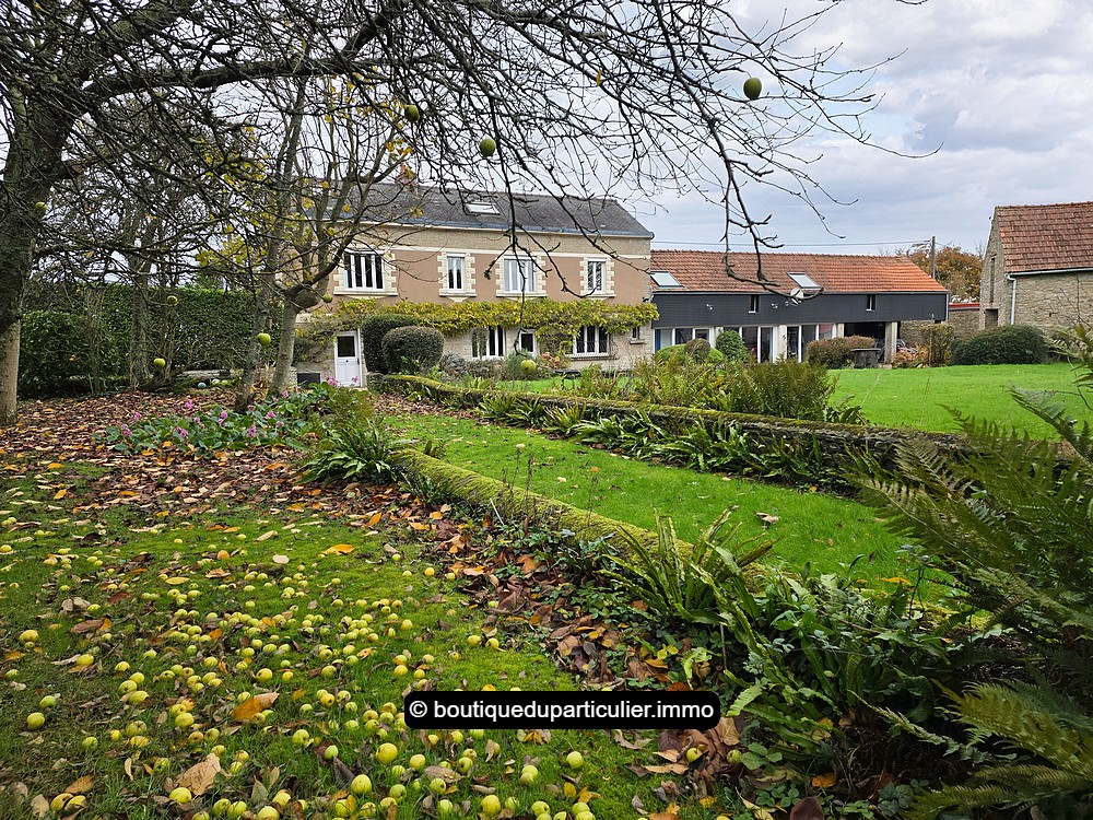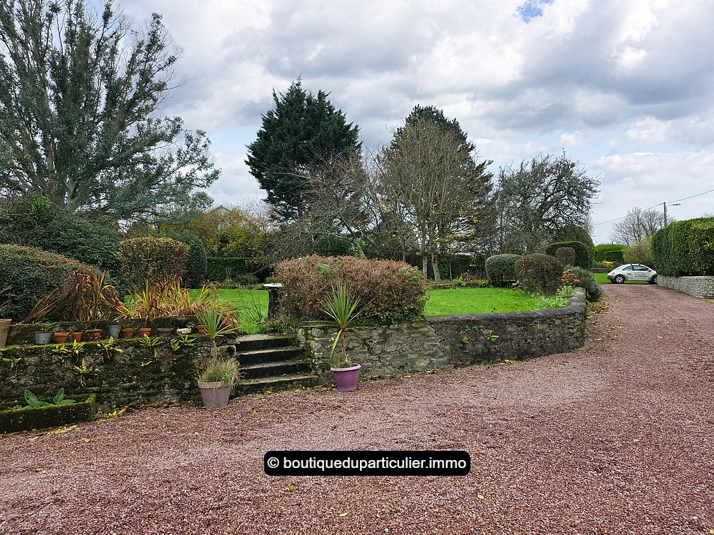 Agréable jardin devant avec plusieurs dépendances desservies par une grande cour et une allée gravillonnée :