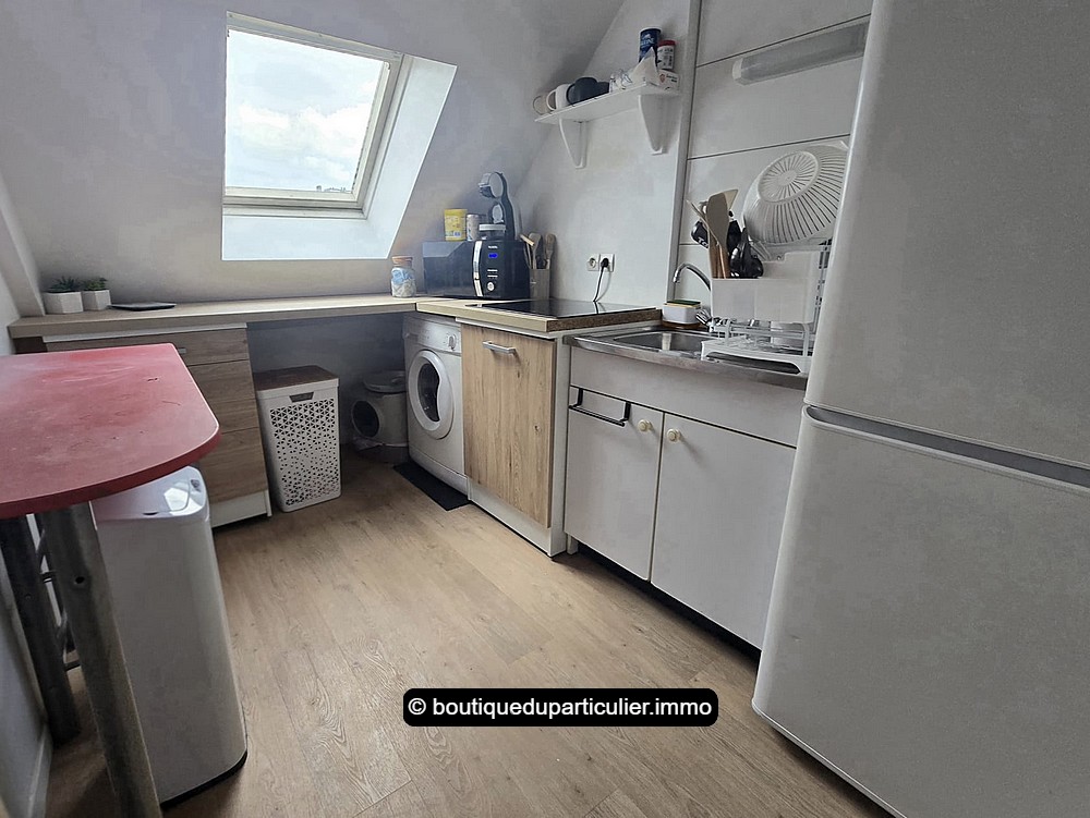 Au 3ème et dernier étage, sous mansarde, appartement F2 d'env. 30 m² composé d'un salon, une kitchenette attenante, une chambre, et une petite salle d'eau avec douche et WC.