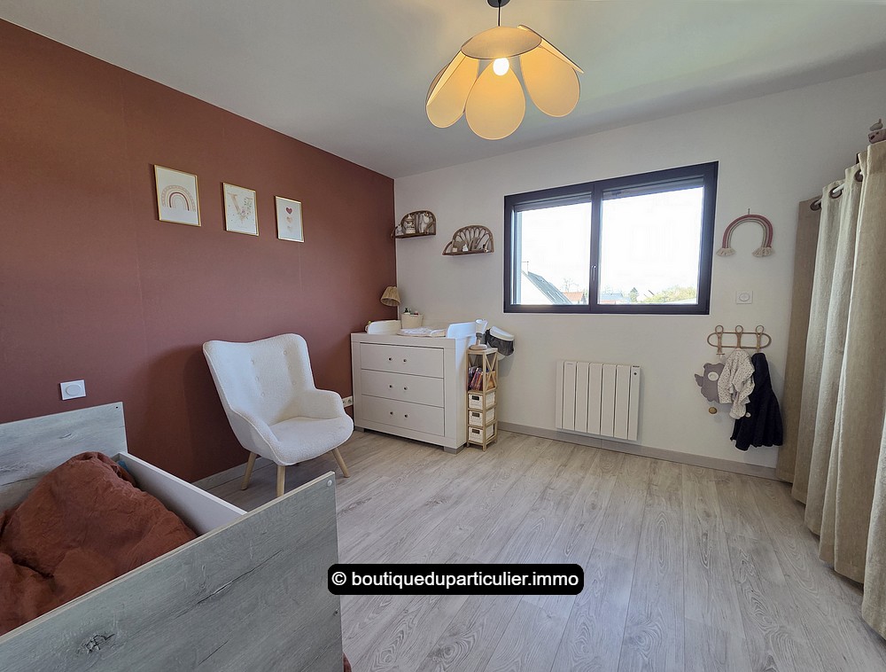 Vous trouverez au même niveau une chambre de 10,55 m², une buanderie, et un WC.