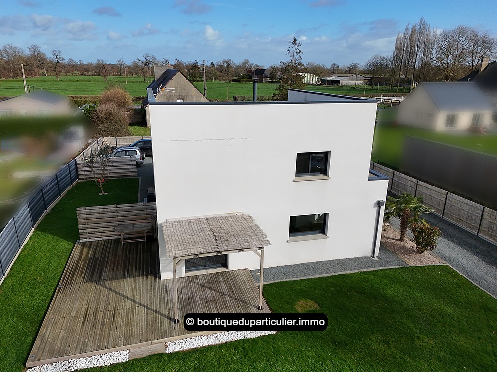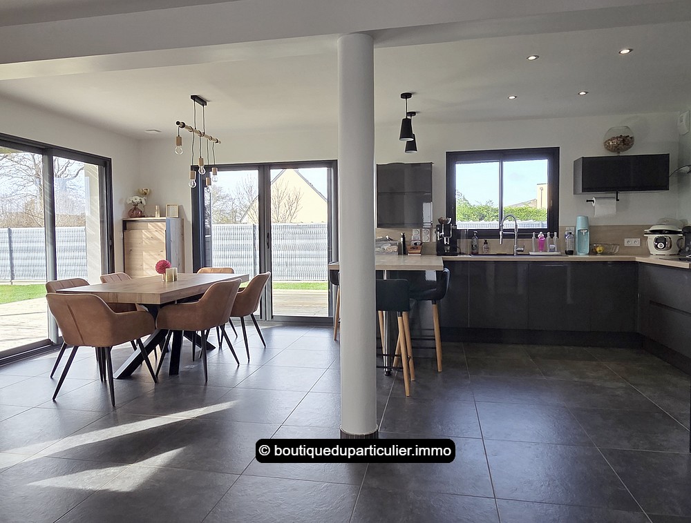 Dans un environnement pavillonnaire calme et verdoyant, aux portes de CARENTAN-LES-MARAIS, maison contemporaine de 143 m² avec 4 chambres et double garage, sur une parcelle de 1 075 m².