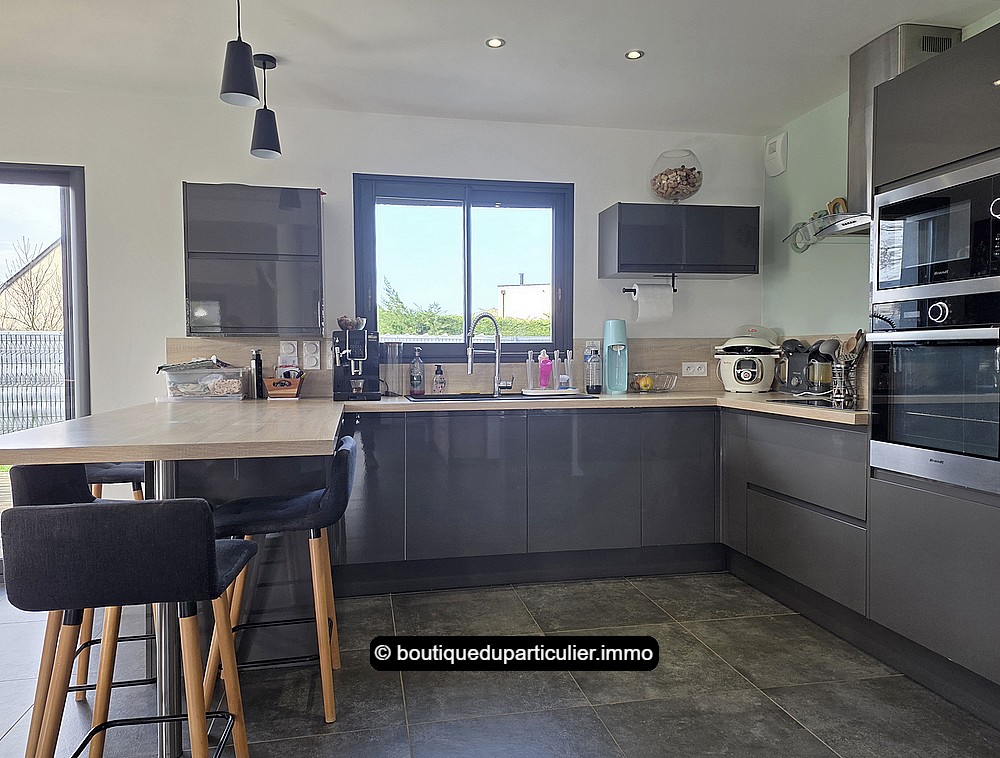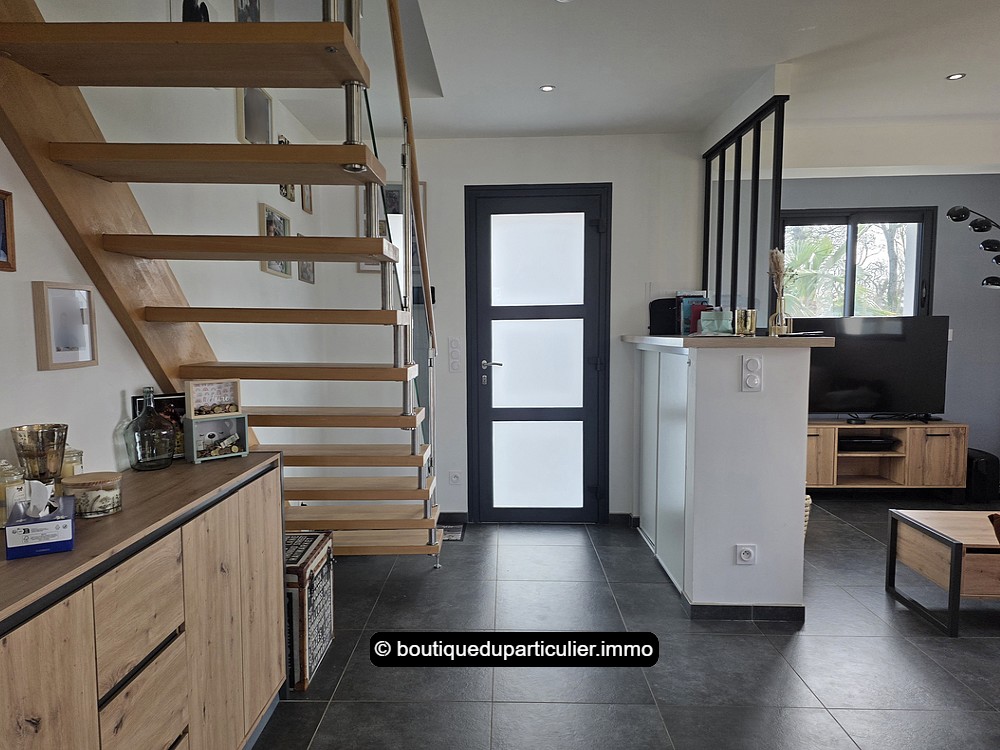 Construite en 2017, cette maison moderne vous séduira par sa qualité de construction, son agencement fonctionnel, ses pièces généreuses baignées de lumière, ornées d’une décoration sobre et soignée, ainsi que par son excellent classement énergétique en double A.