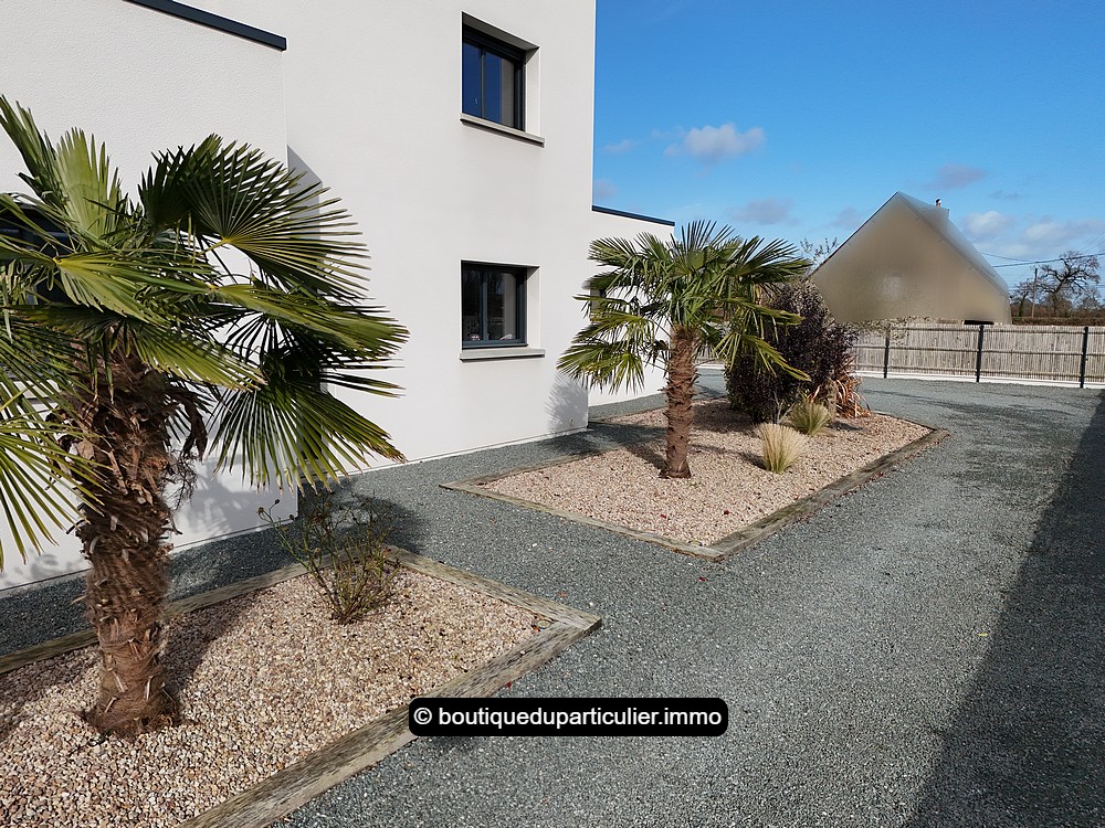 Jardin entièrement clos autour de la maison, fermé par un portail motorisé équipé d'un visiophone, parking et terrasse.