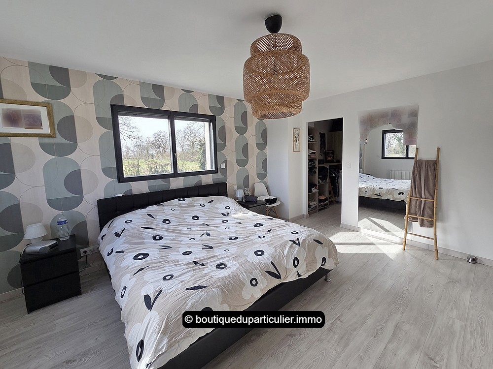 A l'étage, 3 belles chambres de 12,70 - 13 et 20,65 m², toutes avec rangements, et dont la plus grande avec une pièce dressing en plus. Une salle de bains avec baignoire d'angle et douche, et un WC séparé.