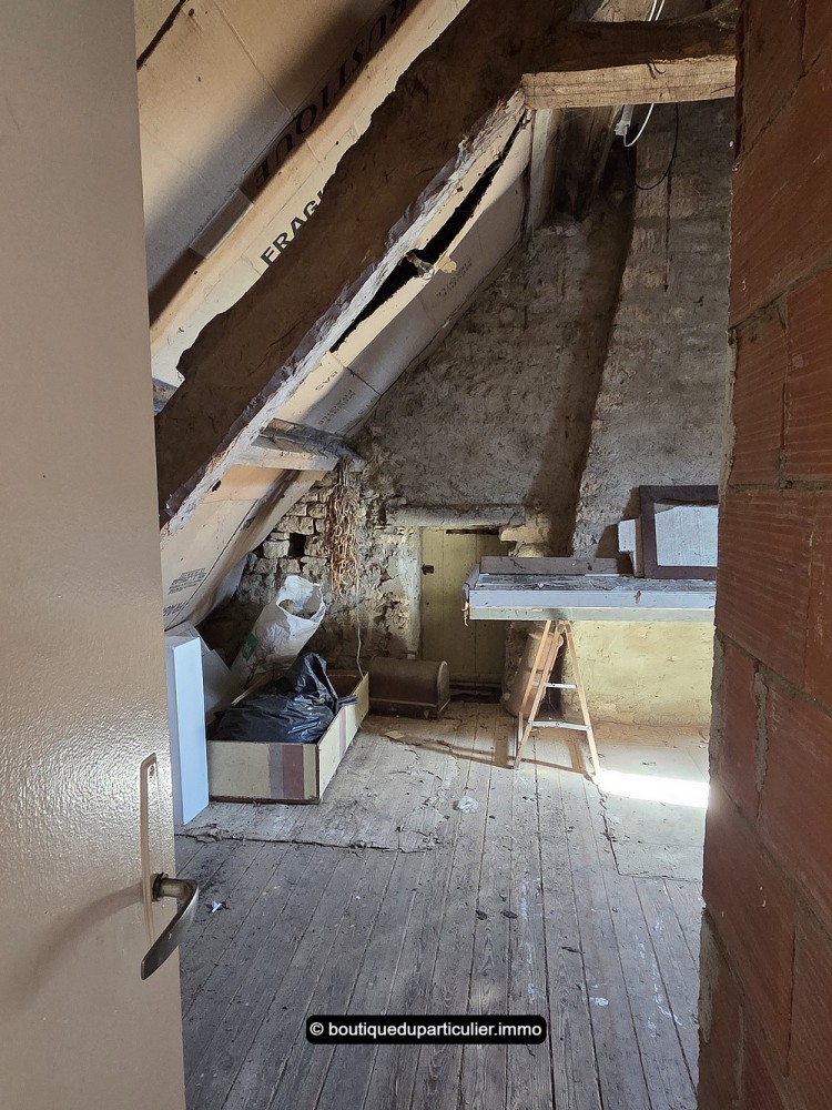 À l’étage, vous trouverez deux autres chambres d’environ 9,50 m² et 12,50 m², ainsi que deux greniers offrant un potentiel d’aménagement (chambres, salle de bains…).