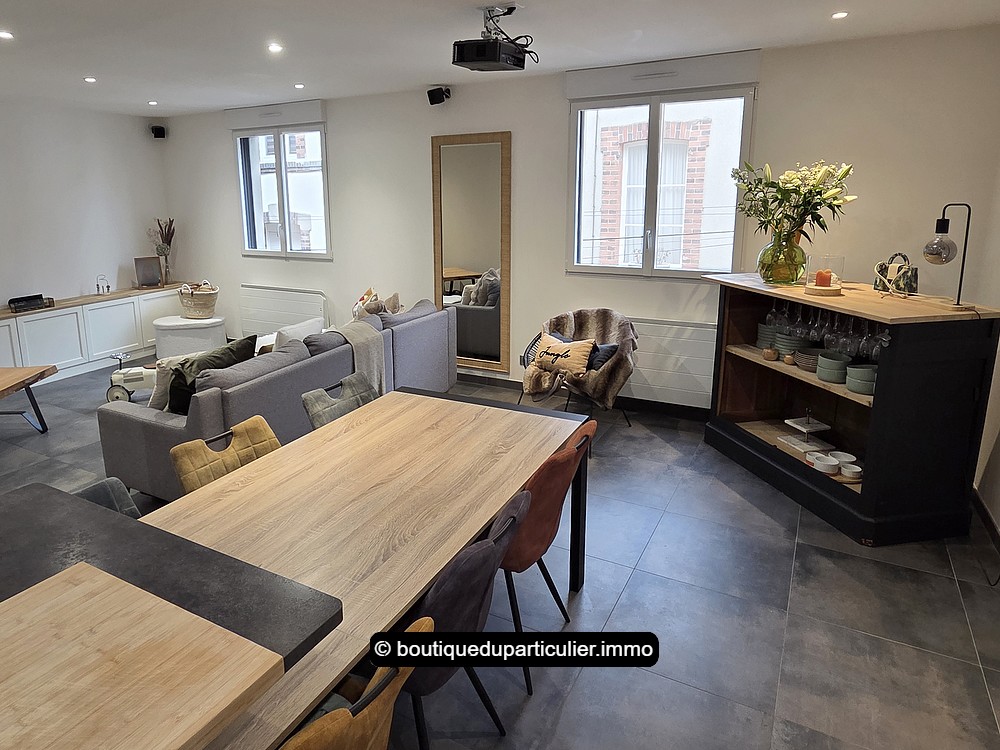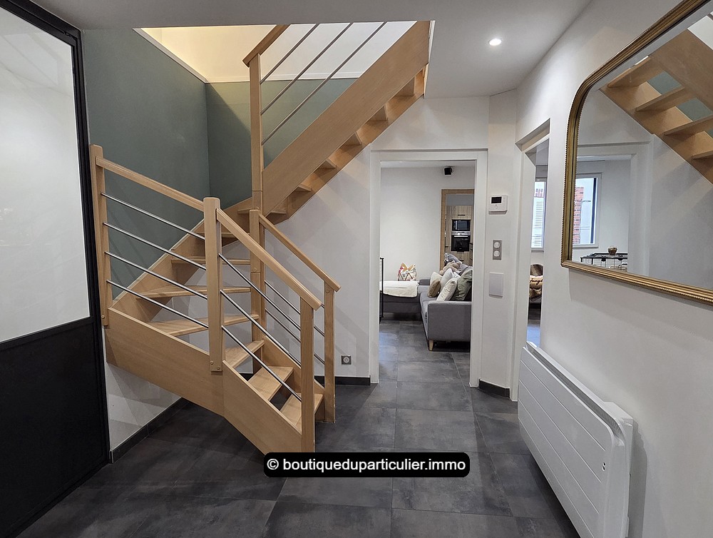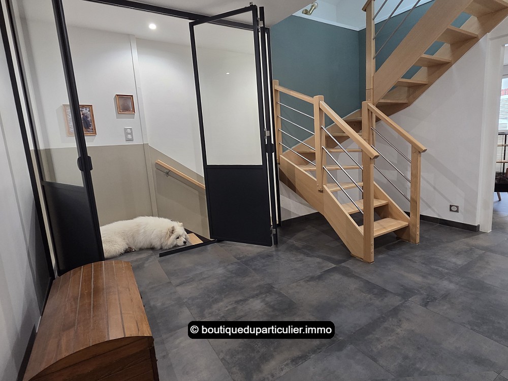 Quartier Bucaille, maison de ville rénovée avec un très grand garage, sans extérieur.