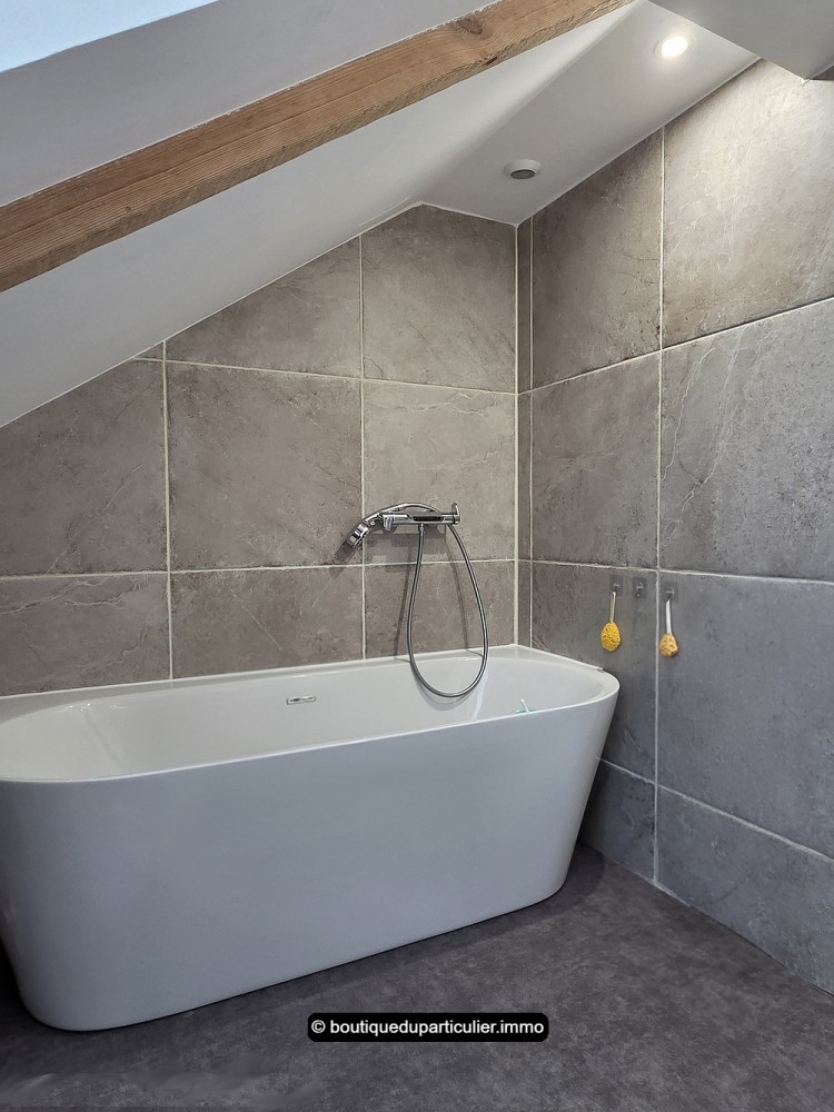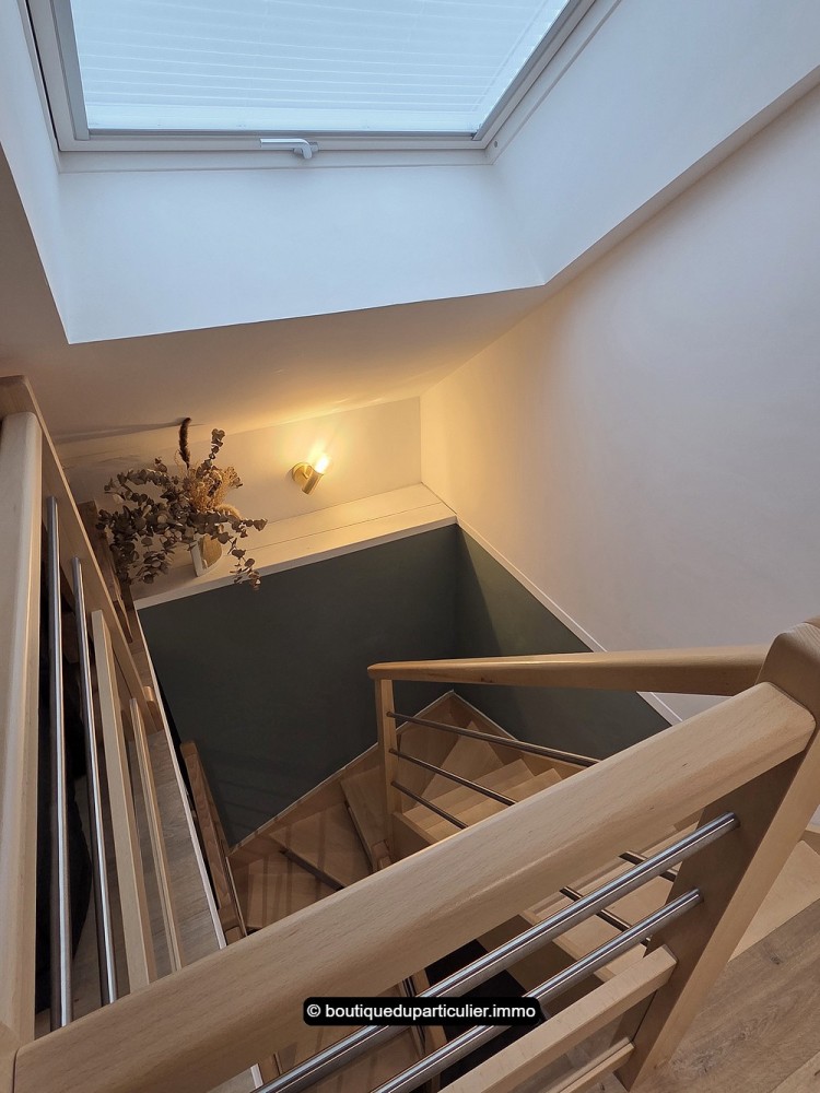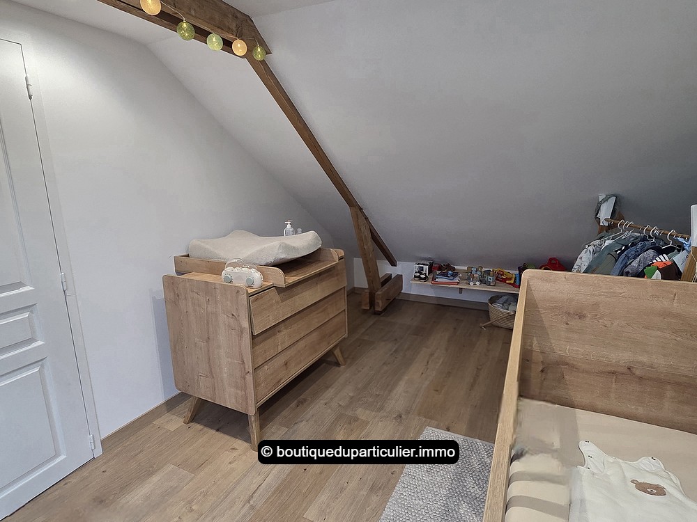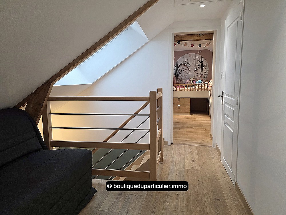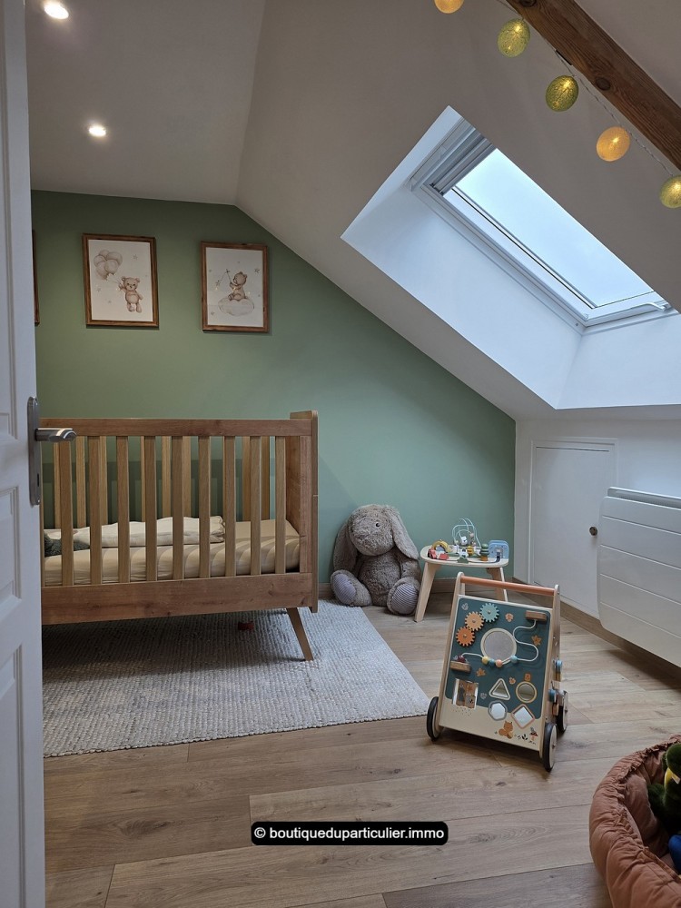 Le second étage, récemment créé, est très mansardé et donc très peu comptabilisé en surface habitable Carrez, mais il offre un espace exploité de manière optimisée avec 2 chambres supplémentaires, une salle de bains, un WC, ainsi qu’un coin bureau en mezzanine.