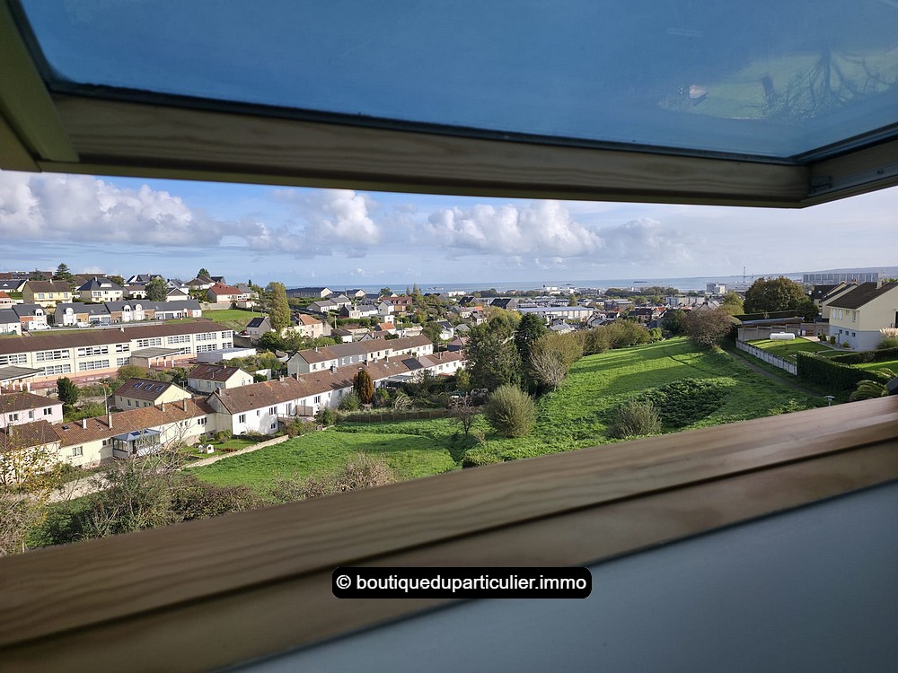 Agencée sur 3 niveaux, elle est composée au RDC d'une entrée, un séjour/salon traversant d'env. 30 m² avec vue dégagée jusqu'à la rade de Cherbourg, une cuisine indépendante aménagée et équipée, un WC, et l'accès direct au garage attenant.