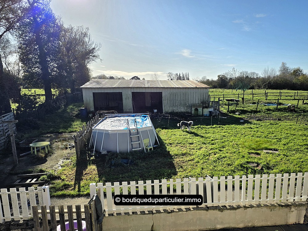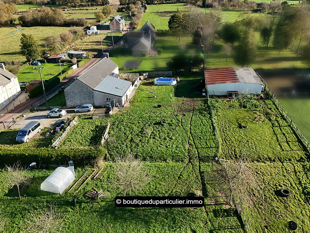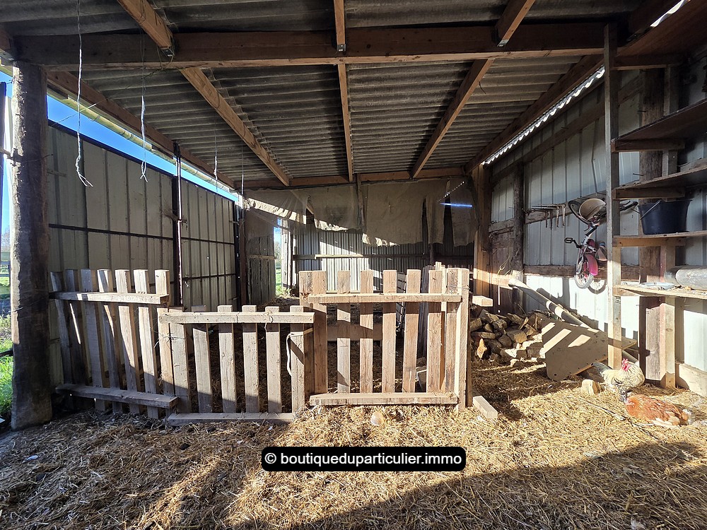 La maison dispose d'un cellier attenant, d'une grande cour, d'une terrasse sud et d'un grand terrain attenant de 4 749 m² avec un hangar ouvert d'env. 150 m².