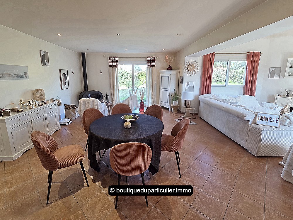 Belle construction traditionnelle nécessitant un léger rafraîchissement (peintures principalement), dans un environnement calme et agréable, avec épicerie et ramassage scolaire à 300 m, et plage à 2 km.