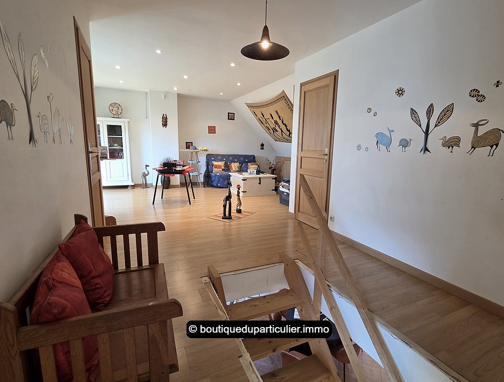 À l’étage, une vaste mezzanine, actuellement aménagée en salon / salle de jeux / bureau, pourrait facilement être transformée en chambre supplémentaire.
