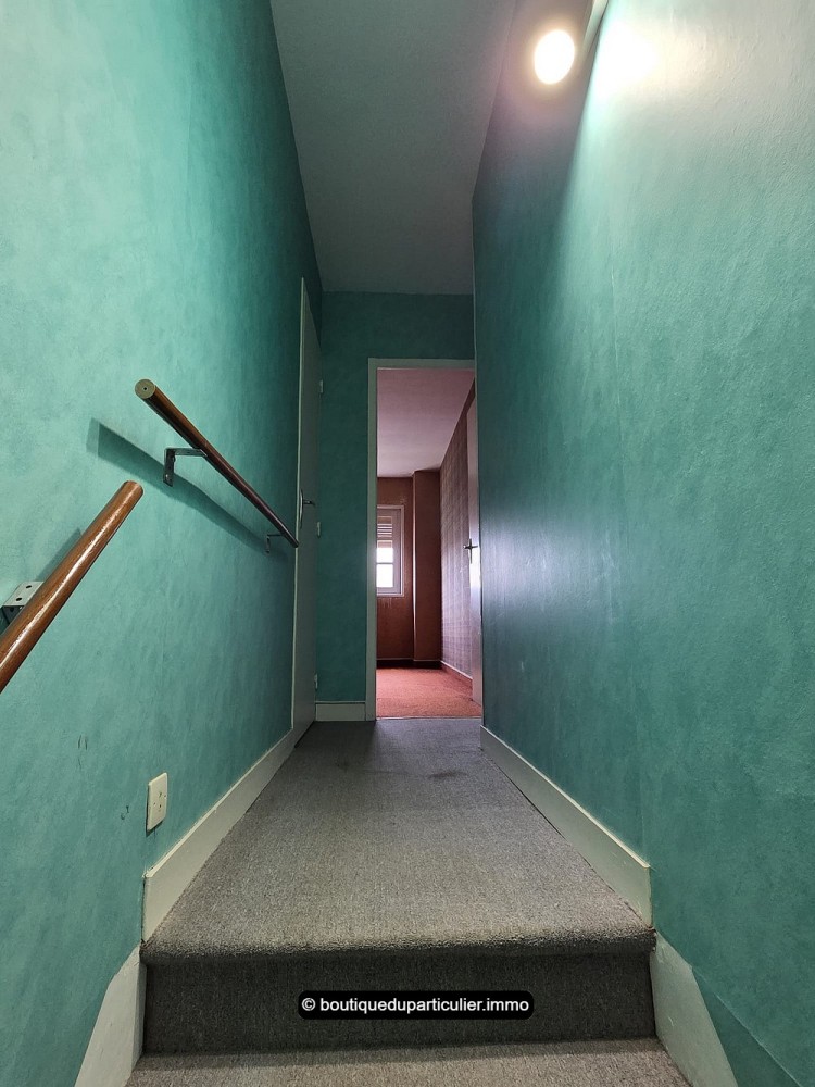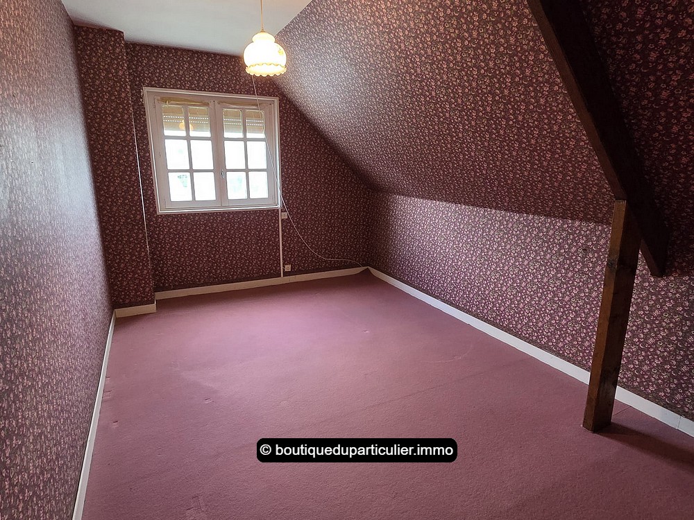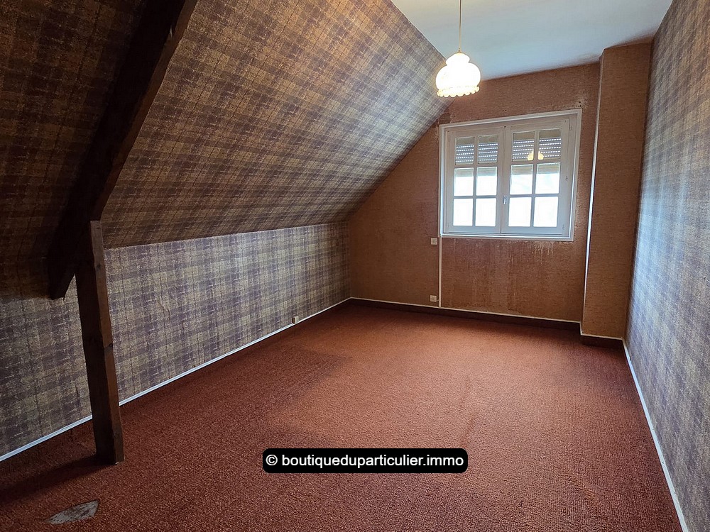 C'est à l'étage qu'il faudra prévoir le plus de modernisation, il comprend 2 chambres mansardées d'env. 13 m² au sol, une autre pièce d'env. 16 m² au sol (aveugle, mais qui pourrait facilement devenir une 4ème chambre en y ajoutant un Velux), et un grenier idéal pour la création d'une 2nde salle de bains.